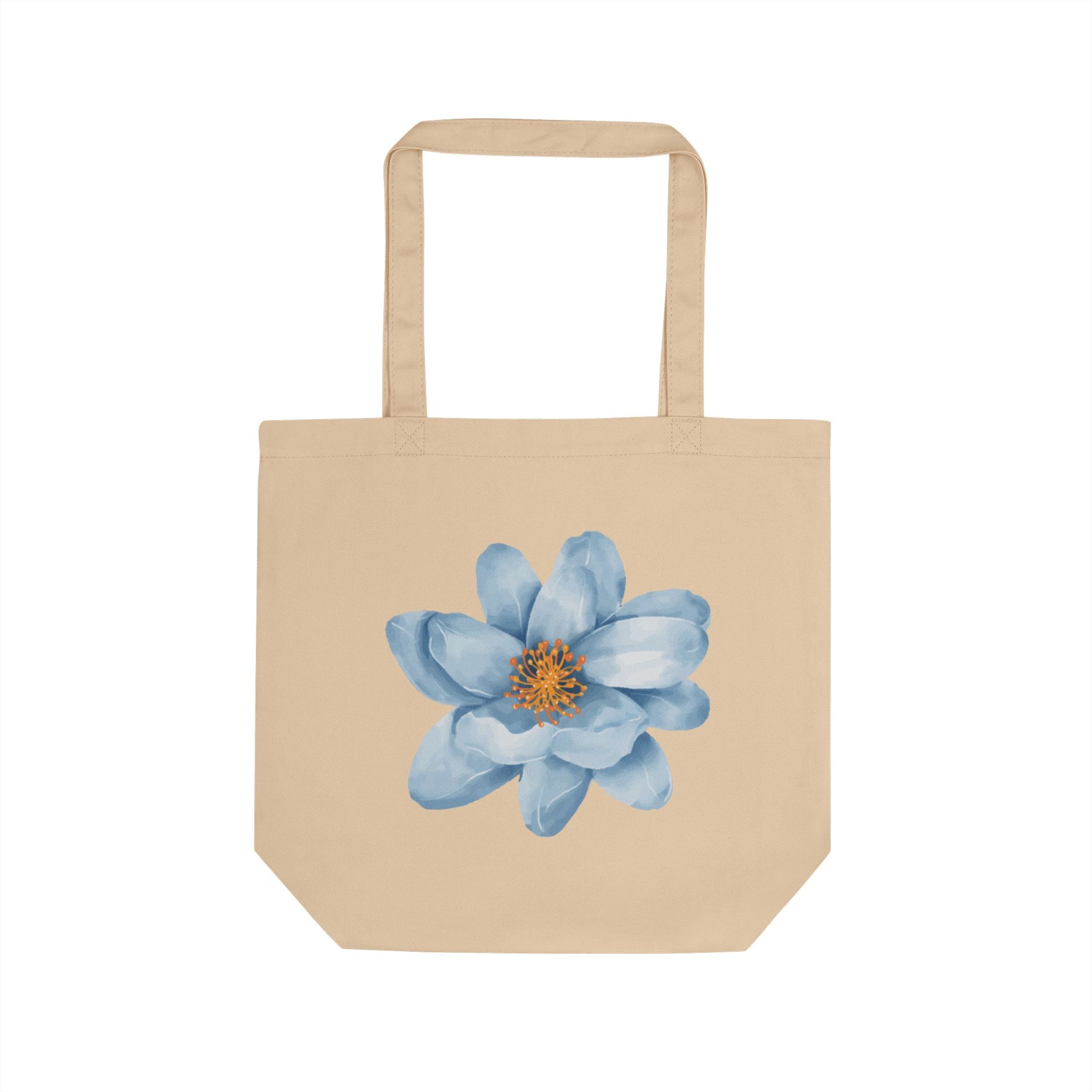 Blue Watercolor Flower Tote Bag - Eco-Friendly Organic Cotton Canvas Shoulder Bag